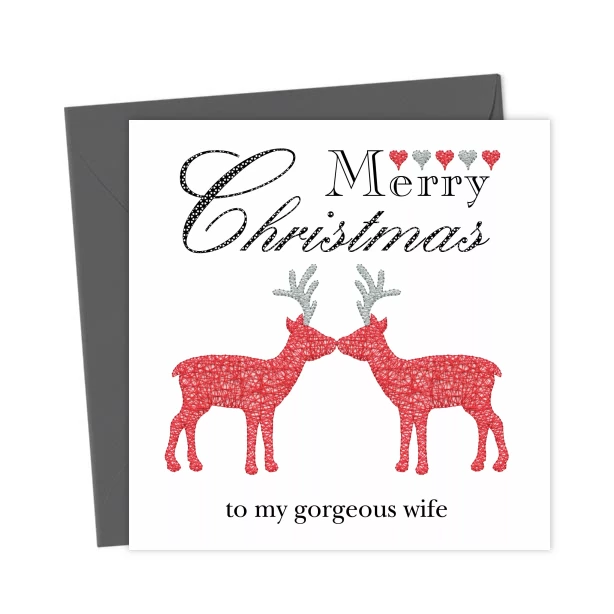 Merry Christmas To My Gorgeous Wife – Cute Reindeers Christmas Card – Greetings Card