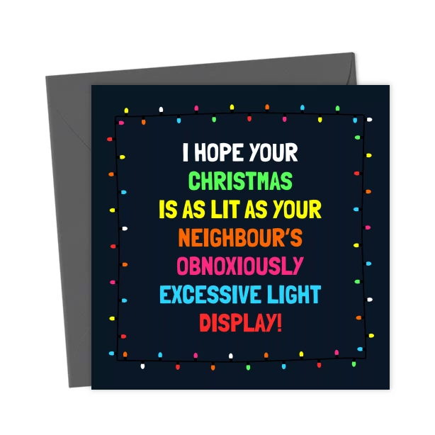 Neighbours Obnoxiously Excessive Light Display – Funny Christmas Card – Greetings Card