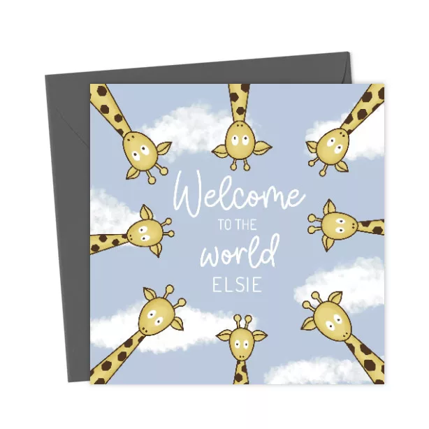 New Baby Giraffe Personalised Card – Welcome to the World – Greetings Card