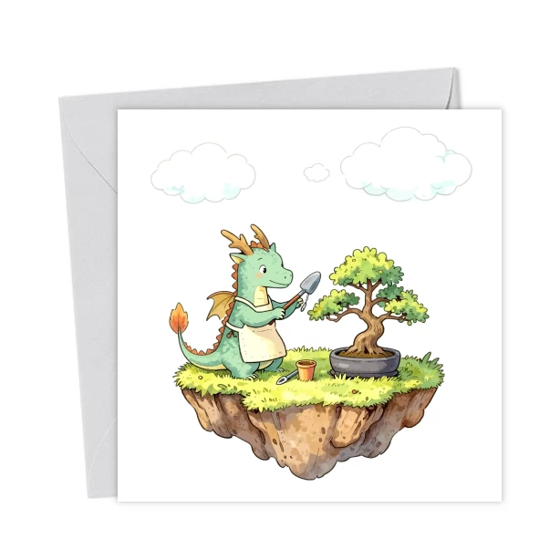 Patience Takes Time Dragon and Bonsai Inspirational – Greetings Card