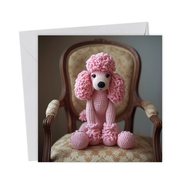 This gorgeous pink poodle crochet card, blank for your own message. Perfect for dog lovers, crochet lovers and knitters alike.