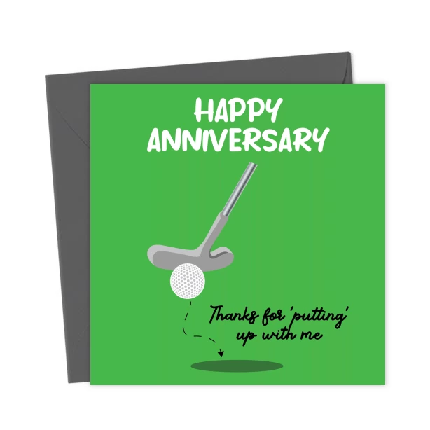 A funny wedding anniversary card for golf lovers. This romantic card features a golf club and golfing pun. Ideal for wedding or other anniversaries. For golfers and golf fans.