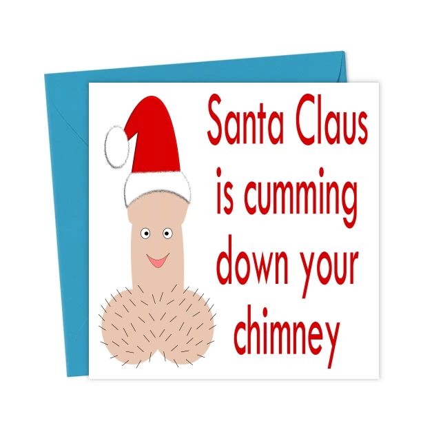 Santa will be cumming down your chimney this Christmas with this rude and naughty festive cartoon Santa willy card. A willy with hairy balls wearing a Santa hat is fun for dults only. Cum and get it!