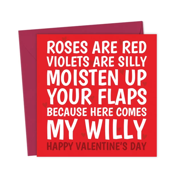 Rude Valentine’s Card For Her – Roses Are Red Willy Pun – Greetings Card