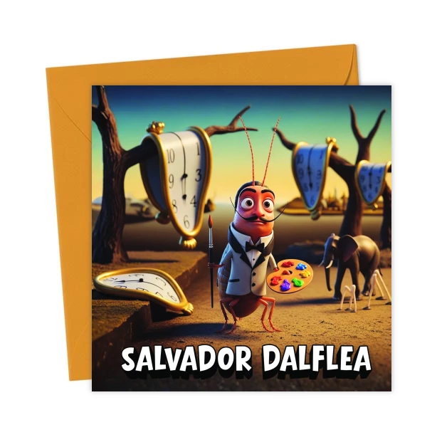 Salvador DalFlea Birthday Card – Humorous Card for Art Lovers – Greetings Card