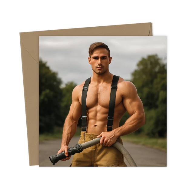 Hot stuff! This saucy firefighter birthday card is perfect for anyone who enjoys cheeky fun.
