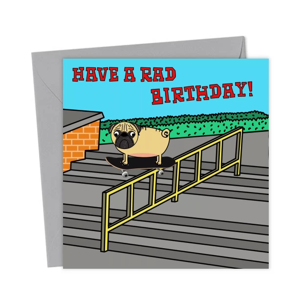 Skater Pug birthday card – Greetings Card