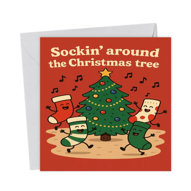 Sockin’ around the Christmas tree – shameless Christmas pun. – Greetings Card