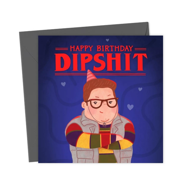 Are you or do you know someone who’s a huge Stranger Things fan and know they were super excited to see the final season? Then send them this Dipshit Derek card to make this birthday extra special.