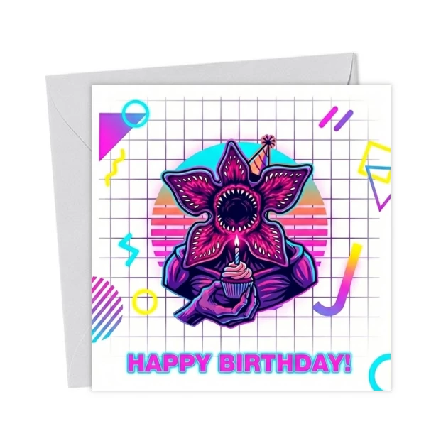 Stranger Things Demogorgon Birthday Card – Retro 80s Style – Greetings Card