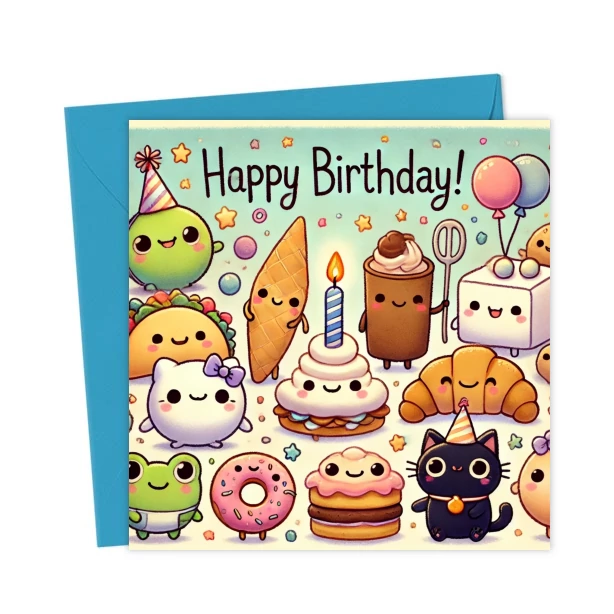 Super Cute Jellycat Inspired Kawaii Food & Animal Happy Birthday Card