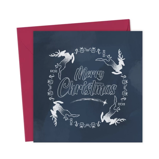 Teacher Christmas Card – Chalkboard Reindeer Wreath Design – Educators – Greetings Card
