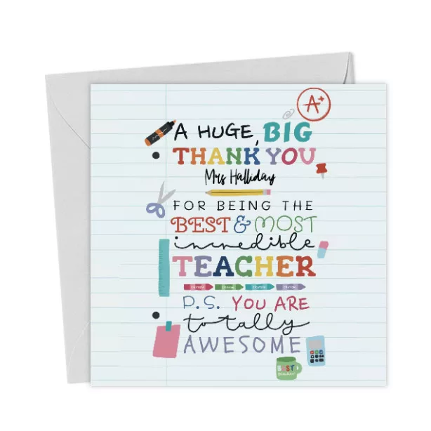 Say thank you to your favourite teacher and let them know they’re the best with this cute school themed thank you card.