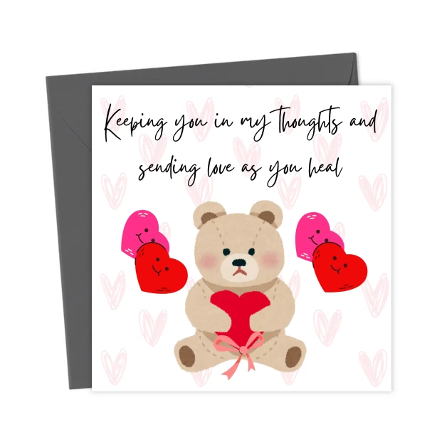 A heartfelt sympathy card that says, “Keeping you in my thoughts and sending love as you heal.” Ideal for showing care, support, and comfort during a difficult time of grief and recovery.