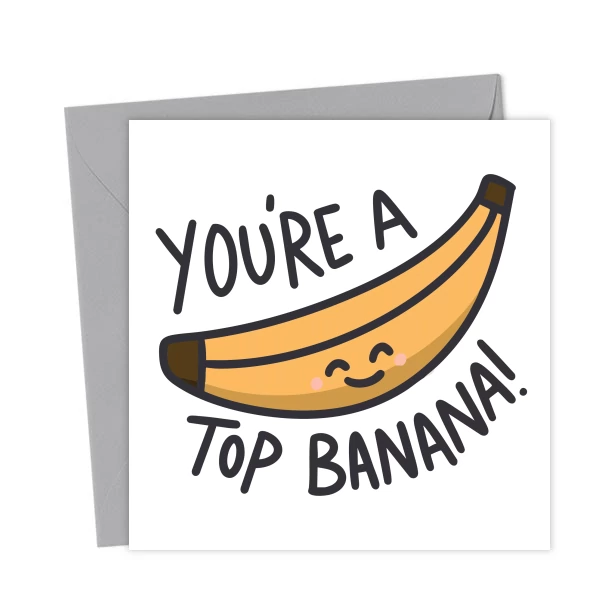 Spread smiles with this hilarious “You’re a Top Banana” greeting card! Featuring a cheeky cartoon banana with serious a-peel, this card is the best of the bunch for birthdays, thank yous and more!