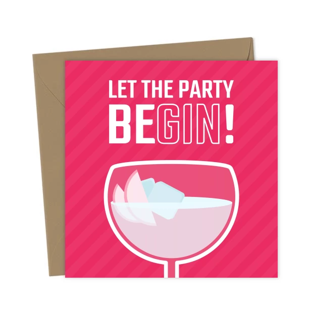Vibrant Pink Let The Party Begin – Gin Birthday Card – Greetings Card