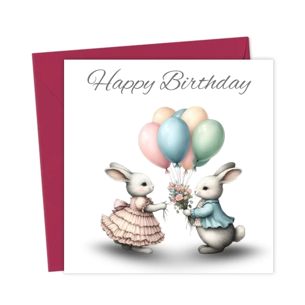 Vintage Bunnies Happy Birthday Card – Greetings Card