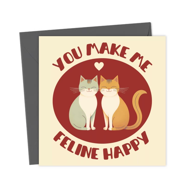 You make me feline happy – cute & funny romantic cat card – Greetings Card