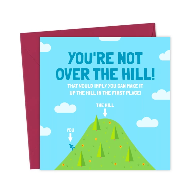 Know someone who’s getting older, let them know that they’re not over the hill yet with this funny birthday card. Afterall, being over the hill implies they can make it up in the first place.